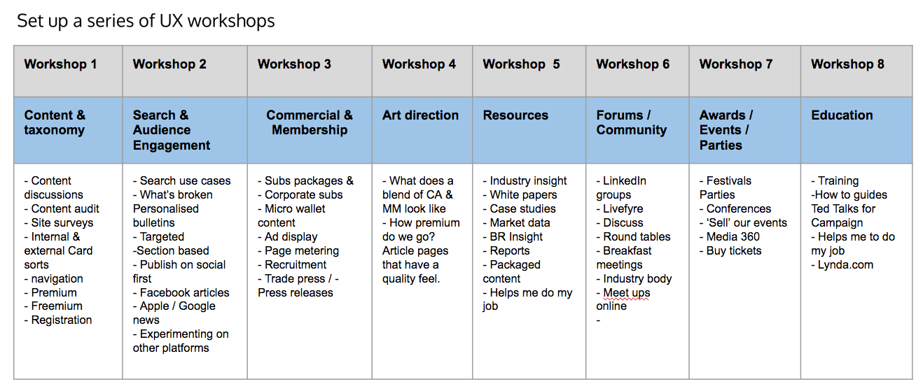 The brief was to fold similar brands into the product and make it a single portal for those in advertising, marketing and events. The aim was to engage as many of the user base to become 'logged in users' so we could better understand their needs and create a better product for them. We setup initial stakeholder workshops, interviewed key colleagues and created a working product team of ux, development, analytics, seo, business and editorial.